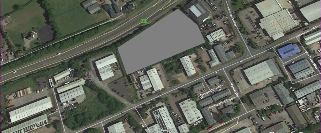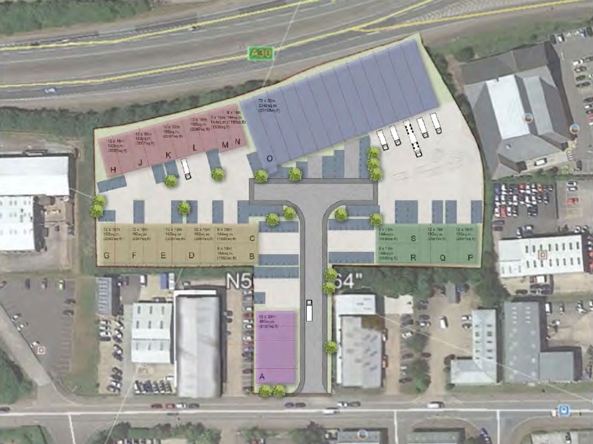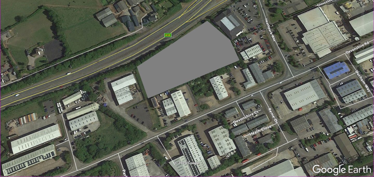 DESCRIPTION The site comprises 1.41 hectares (3.48 acres) with 140 m (c. 460 ft) to the A30. The existing access is via Devonshire Road. The proposed scheme will comprise of 14 business / light industrial units of steel frame construction with insulated profile steel cladding to roof and part brick /block & part steel cladding to elevations.